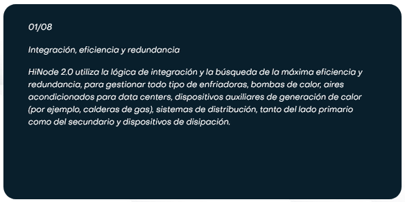 HiNode 2.0 es el sistema exclusivo, diseñado y desarrollado por HiRef, para la gestión y supervisión del sistema de aire acondicionado de precisión. Interactúa con todas las unidades y dispositivos presentes en el sistema para optimizar su funcionamiento.