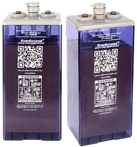 Electrolito con dilución optima de baja corrosión, muy baja gasificación durante el proceso de carga, materiales 100% reciclables. Las baterías de plomo-ácido tubulares inundadas recargables EverExceed de 2V cumplen con los estándares de seguridad UL1989, CE, IEC60896, IEC61427, IEC60254, IEC60079