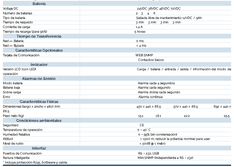 • Ranura inteligente compatible con la tarjeta Web SNMP o Tarjeta de contactos secos.