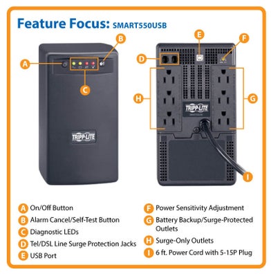 El UPS de línea interactiva proporciona respaldo por batería básico con regulación de voltaje automática para su sistema de red de hogar/oficina o Home Theater.